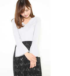 【送料無料】 トレンドのベルスリーブがお目立ちなVニット。襟ぐりに沿って波打つデザインも可愛らしく、今年らしい仕上がりです。ラメ生地を使用しているので、いつもより華やかさも手に入り、甘さをやわらげる色味も◎。スカートにウエストインしてメリハリをつけるとバランスよくキマり、スタイルアップも狙えます。※ラメ入り プロポーションボディドレッシング/PROPORTION BODY DRESSING PROPORTION BODY DRESSING|トップス|ニット・セーター